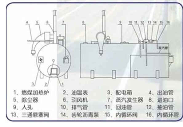 該產品是“內熱型局部快速瀝青儲存加熱器裝置”,瀝青罐快熱、節能、環保為一體的瀝青設備,產品中的直熱式便移動設備,產品不僅加熱速度快、省燃料、而且不污染環境,操作簡便輕松,自動預熱系統徹底免除烘烤或清洗瀝青及管道的煩惱,自動循環程序使瀝青自動按需要進入加熱器、除塵器、引風機、瀝青泵、瀝青溫度顯示器、水位顯示器、蒸汽發生器、管道及瀝青泵預熱系統、壓力泄放系統蒸汽助燃系統、清罐系統、卸油入罐(自選)裝置等組成,所有不見均安裝于罐體上(內)形成緊湊的一體型結構。定型產品有:YK-10T 30T 50T 60T 100T 200T 500T 1000T等,可與15T 20T 60T 80T 100T 120T 150T各種噸位的拌和樓直接配套。采用多套加熱器與瀝青儲存罐,可組成各種規模的快裝瀝青庫,滿足你對各種產品的需求.